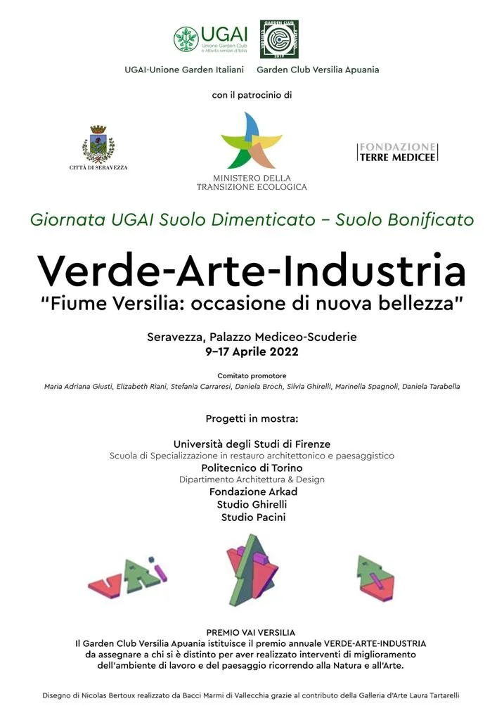 “Fiume Versilia: occasione di nuova bellezza” è l’evento organizzato in occasione della giornata – UGAI (Unione Garden Italiani ) dedicata al tema “Suolo dimenticato, suolo bonificato” con il patrocinio del Ministero della Transizione Ecologica: una mostra di progetti di paesaggisti, tesi di laurea e laboratori universitari con focus sul riverfront, insieme a un convegno nazionale sulla rigenerazione di aree degradate da insediamenti produttivi.